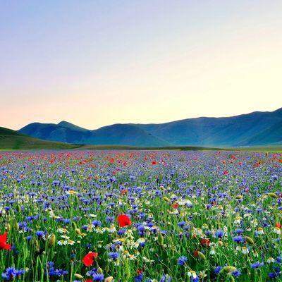 The teacher answers, "Mountain flowers open out like a splendid tapestry, The mountain stream rushes deep and clear like indigo blue."